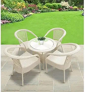 Patio D-8 Indoor Outdoor Living Room Balcony Garden Chair Table Set 4+1 (4 Chair + 1 Table)| Furniture Set| Coffee Chair Table Set|Powder Coated(White)